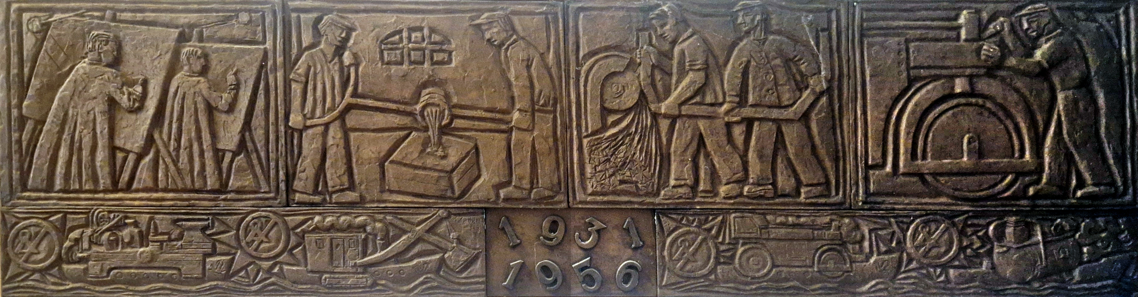 Konstverk i gjutjärn tillverkat till Åsbrinks 25 års-jubileum 1956. Viktiga delar av företagets verksamheter finns representerade. Troligen har delar täljts i trä som sedan skapat formar för den slutliga gjutningen. Storleken är 94 x 25 cm och vikten ca 10 kg. Se även foto.